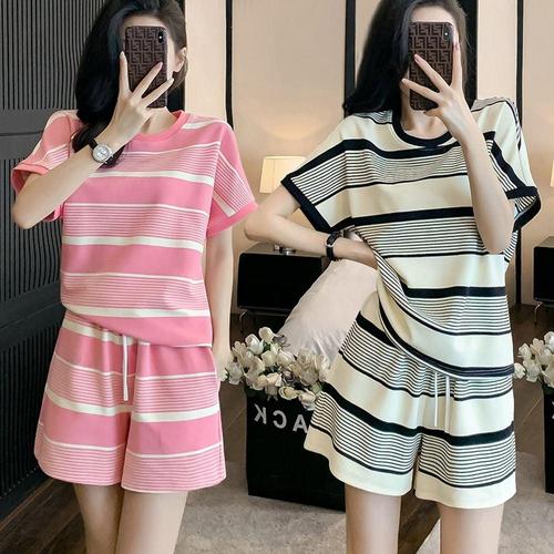 여성 스트라이프 반바지 투피스 세트 WFLS2N7