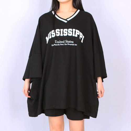 파라노말샵 / (투피스) 미시시피 브이넥 오버팟 반팔 티셔츠 반바지