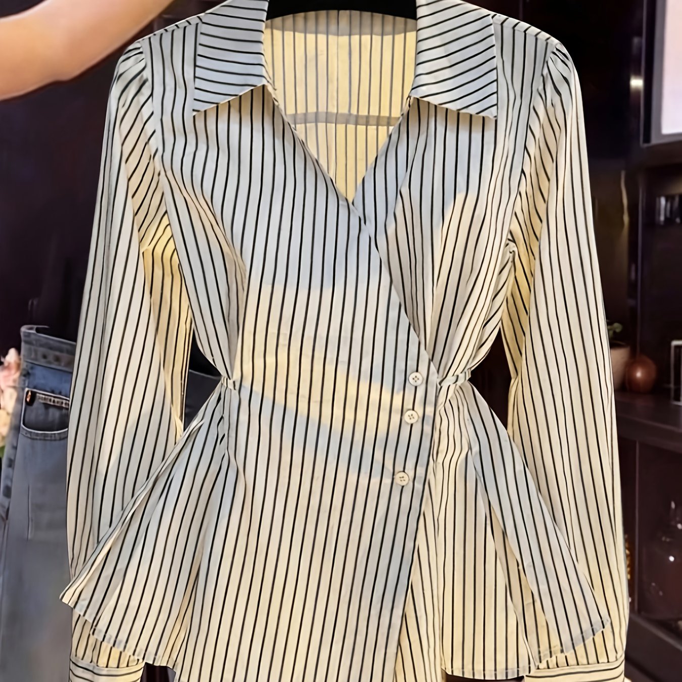 TEMU 여성용 캐주얼 심플 V넥 비대칭 셔츠, 루즈 플리츠 허리 셔츠, 랜턴 소매 긴팔 탑