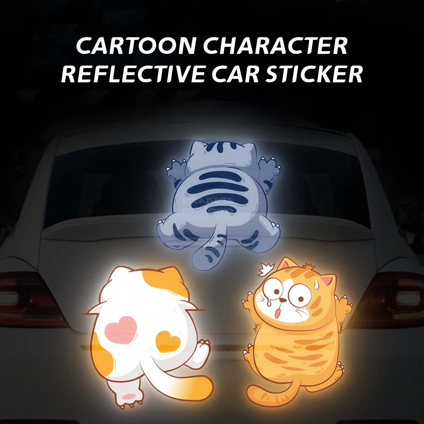 3개 세트 만화 고양이 반사 자동차 스티커 발광 아트 데칼 자동차/오토바이 창문 차체 장식 야간 운전 안전용