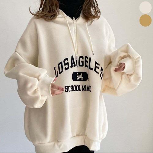 여성 베이직한 반집업 2컬러 레터링 후드티 LK-TA10