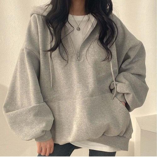 [굿쇼핑몰_의류]2컬러 여성 루즈핏 반집업 후드티 긴팔 후드 티셔츠