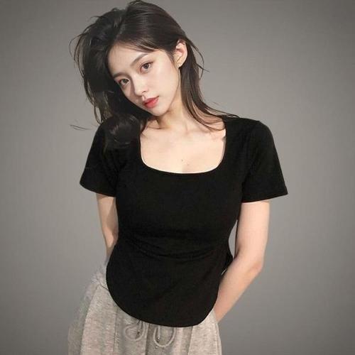 [신상오픈런]|CCT94A2|여성 슬림핏 스퀘어넥 반팔티셔츠 둥근밑단_21955671_597559