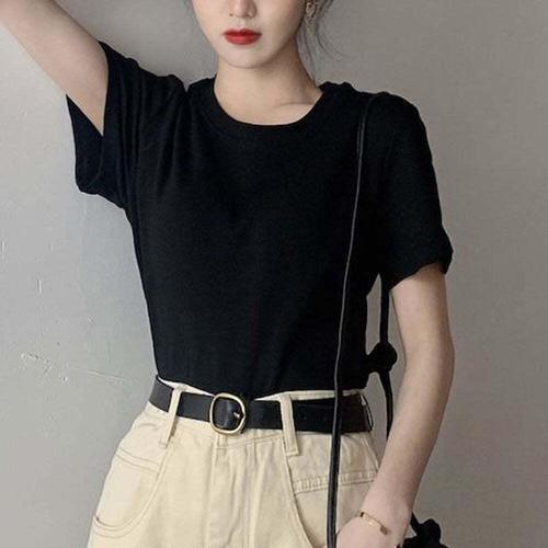 쫄티 봄여름 출근 슬림핏 비즈니스 데일리 하객 얇은 여성 반팔 티셔츠 캐주얼 레이어드