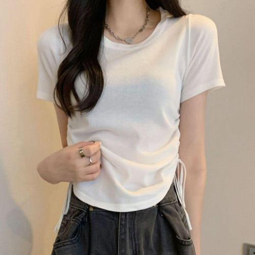 [모노무드]모노무드 크롭 슬림핏 옆셔링 반팔티셔츠 라운드넥 캐주얼룩