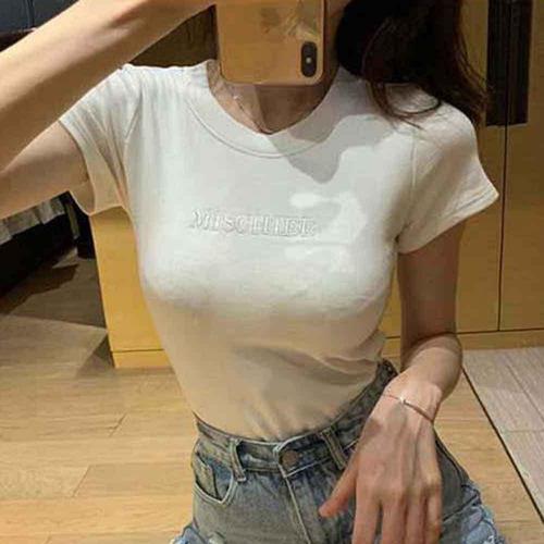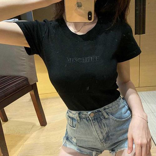 왕관 여자 반팔 티셔츠 라운드 여름 상의 슬림 반팔티