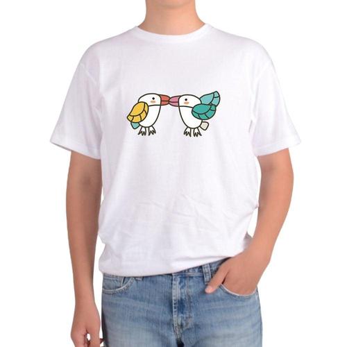 오버핏반팔 커플새 사랑 입맞춤 키스 KISS LOVE BIRDS WF176AE