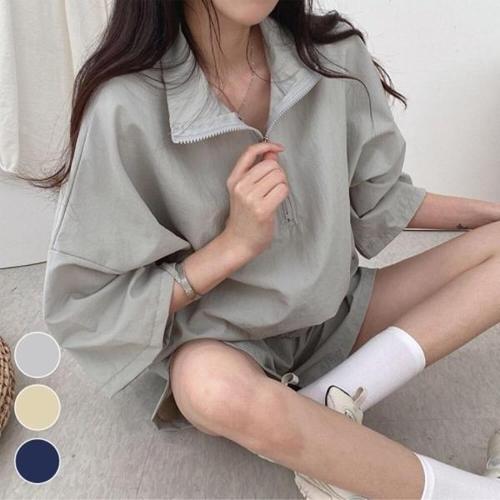 [다잇템][다잇템] 여성 빅사이즈 하프팬츠 반소매 바람막이 하프집업 세트_20142396_588872