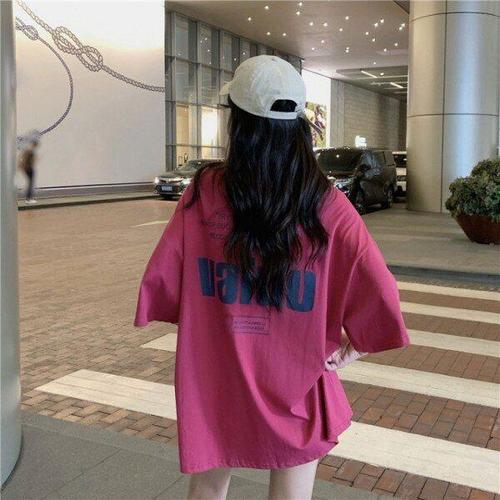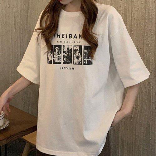 [유야]99까지 면 레터링 라운드 6부 티셔츠 박스티 반팔티 -TS0737H- 빅사이즈 루즈핏 여성 여름