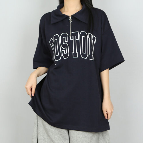파라노말샵 / (박스티) 보스턴 반팔 오버핏 카라 반집업티 (파라노