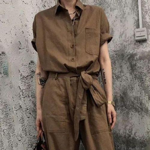 여성 캐주얼 점프슈트 카고 반팔 점프슈트 CIILLNY
