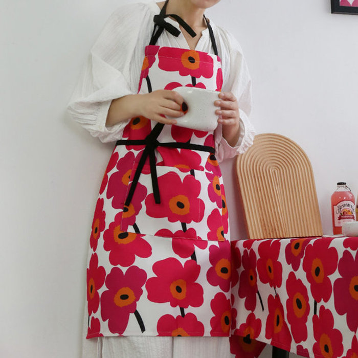 플라워 주방앞치마/북유럽 감성 생활방수 허리 앞치마