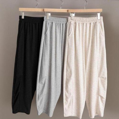 가을 겨울 빅사이즈 배기 여성 바지 캐주얼 루즈핏 두꺼운 따뜻한 솔리드 정장 모직 9부 팬츠