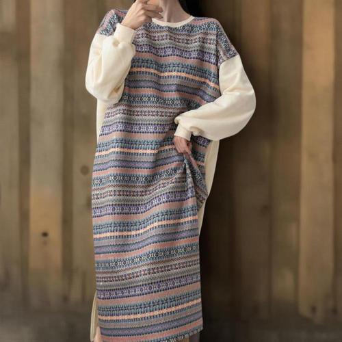 [미라클세븐]여성용 배색 롱원피스 옆트임 빅사이즈 패턴 니트 스웨터