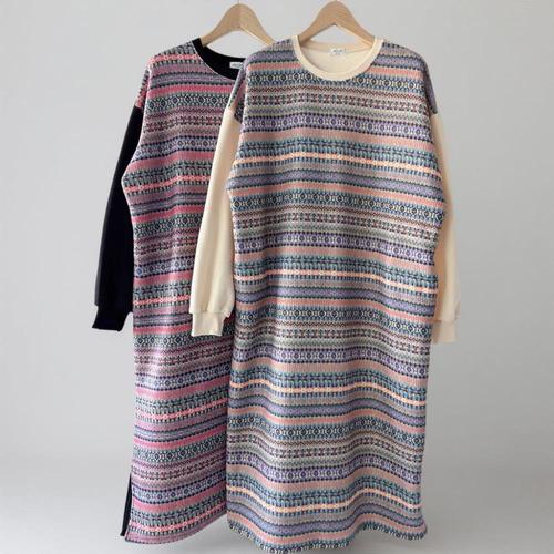 [옷자락] 여자 패턴 스웨터 옆트임 빅사이즈 배색 니트 롱원피스