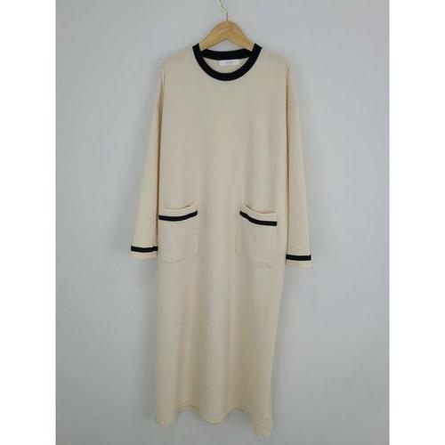 [샵앤]국산 여성 라운드 밑단 배색 롱원피스 ARA-WDR-4948-진베이지