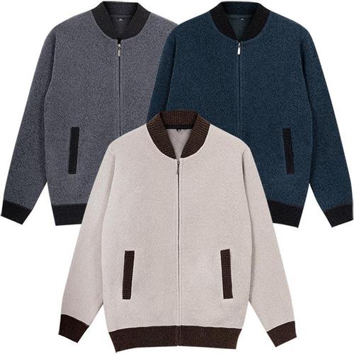 [디바옴므]기모안감 배색 블루종 니트 집업 점퍼 자켓 스웨터 항공