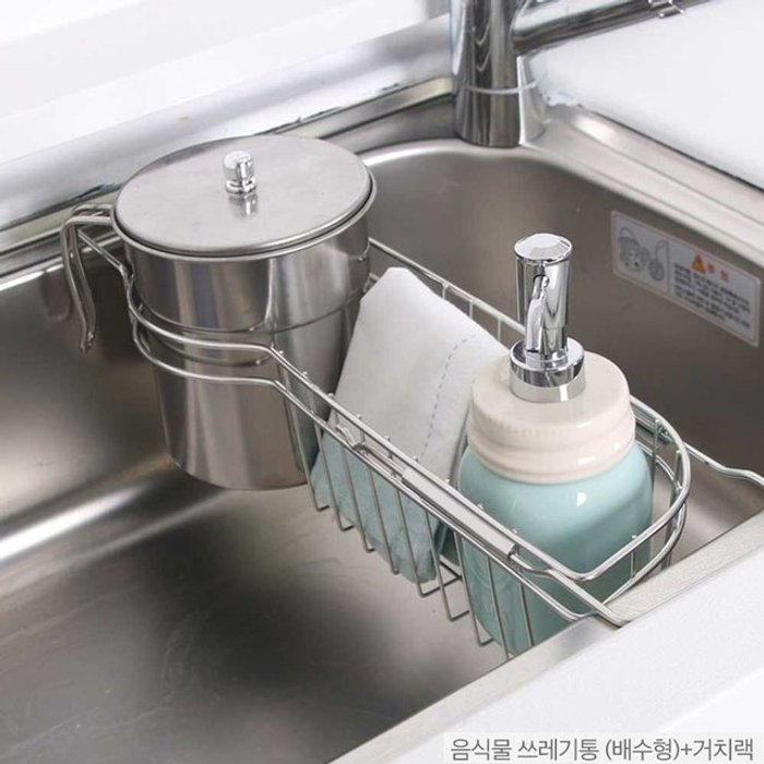 엄지척 가정용 싱크대 음식물 쓰레기통 배수형 거치랙 세트
