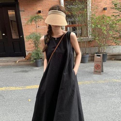 [셀러허브_여성트랜드패션]ONM 블랙 민소매 여성 백트임 시원한 롱 원피스 드레
