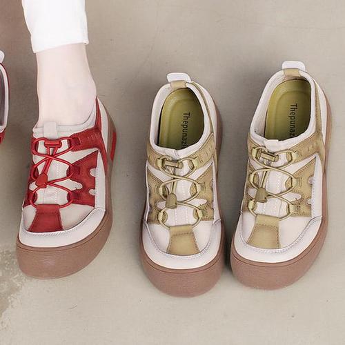 [더힐]슈즈 가죽콤비 밴드끈 여성여자 운동화 슬립온 스니커즈 4.5cm sjbad-Y6850