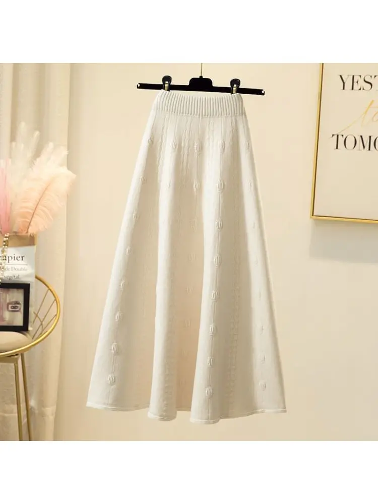 여성용 봄 가을 겨울 니트 스커트 퍼프 주름 하이웨이스트 A라인 우산 스커트