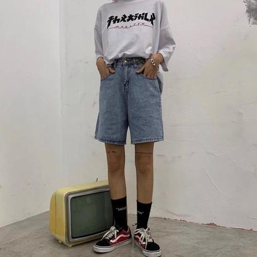 청바지 와이드 밴딩 5부 반바지 여름용 버뮤다 데님 팬츠 WFLLZSR