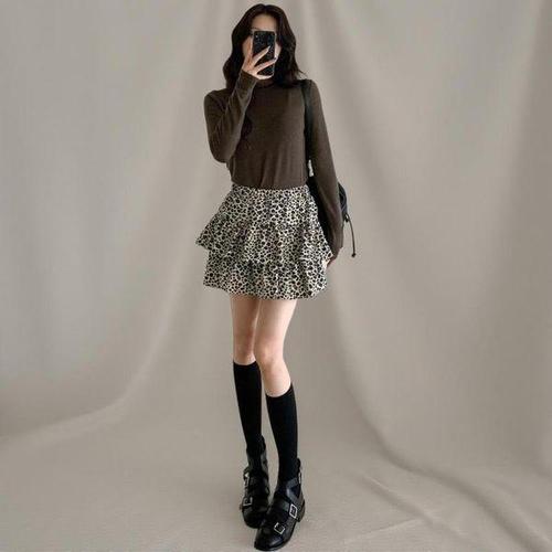 [신상오픈런]여성 레오파드 패턴 프릴 미니 스커트 밴딩 디자인