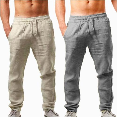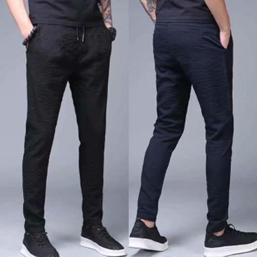 린넨 테이퍼드 핏 밴딩 팬츠 여름 남자 마 바지 남성 쿨 아이스 슬랙스 시원한