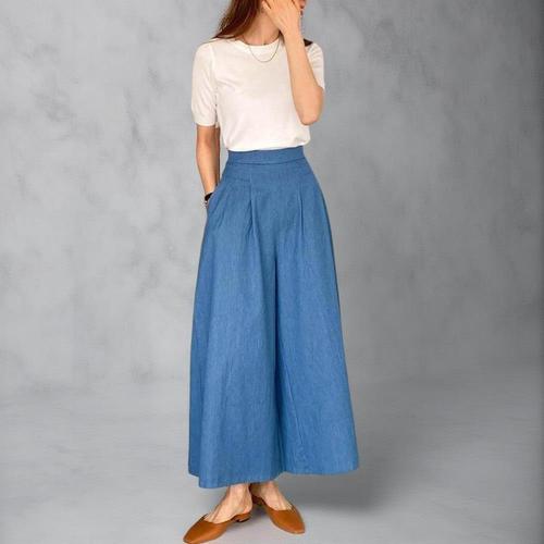 [다잇템]여성 베이직 핀턱 9부 넓은 백밴딩 청바지