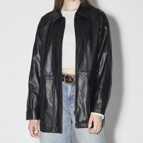 [버커루]인기 여성 중힙기장 인조가죽 자켓_US
