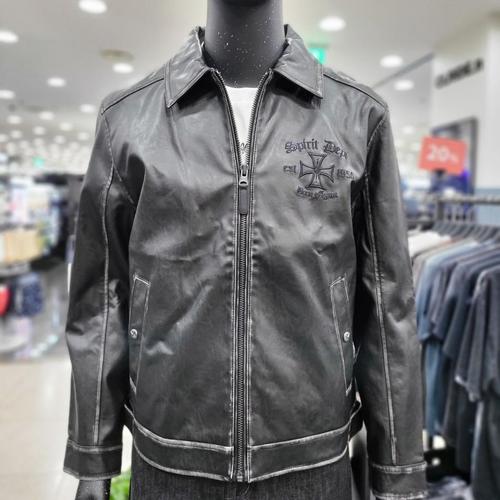 [버커루]남성 아플리케 인조가죽 라이더자켓-DG