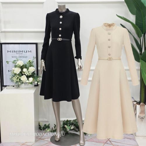 [미니멈]MD 카라넥 버튼 플레어 원피스 MD MXDAWO0150 M_CJ
