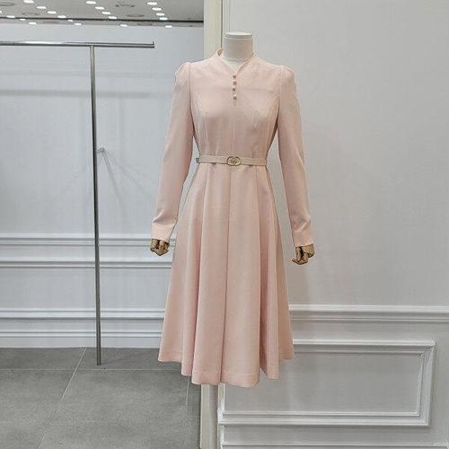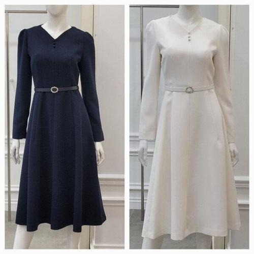 [시크라인]알라르 센터버튼 벨티드 플레어 원피스 빅사이즈/오피스룩/하객룩