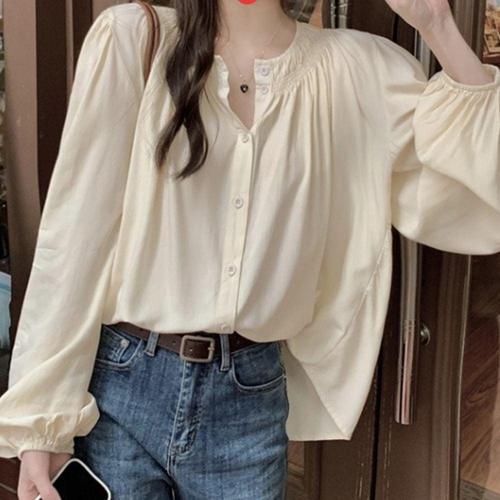 COSYEVNO 여성 봄 가을 셔츠 벌룬 소매 오피스 블라우스 상의 LFHdlsy-8
