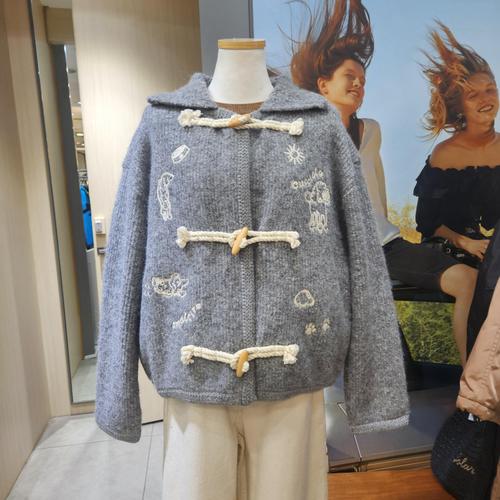 [베네통]베네통 포켓 자수 카라 니트 집업 가디건
