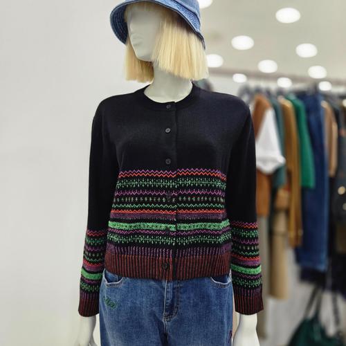 유니크코코 여성 스트라이프 단가라 니트 가디건 가을 5763