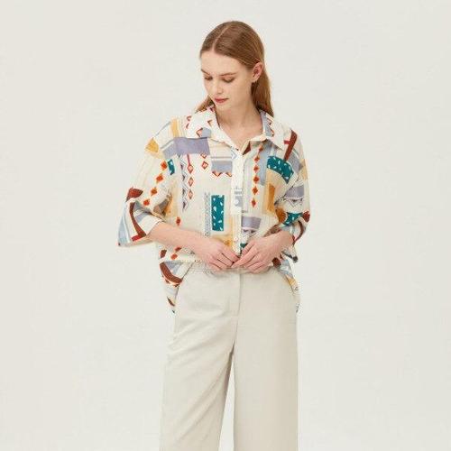 [베네통]오픈 카라 패턴 블라우스_BABL50431