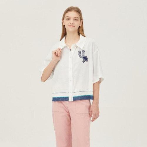베네통 밑단 워싱 배색 데님 블라우스 BABL03511
