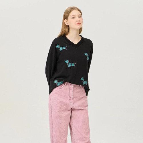 [베네통]닥스훈트 자수 티셔츠_BATS54461