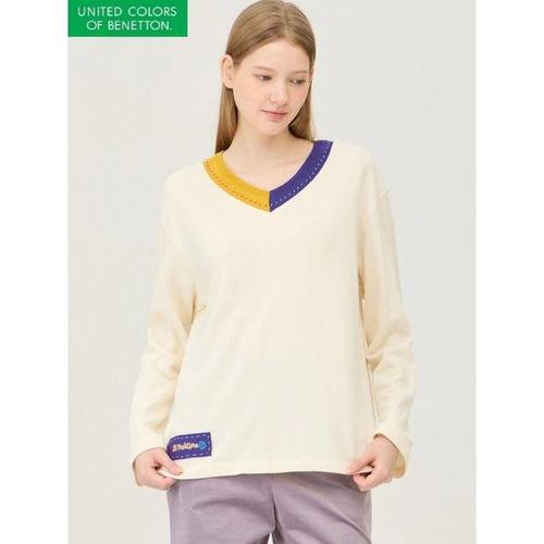 [베네통]컬러블럭 네크 티셔츠_BATS50461