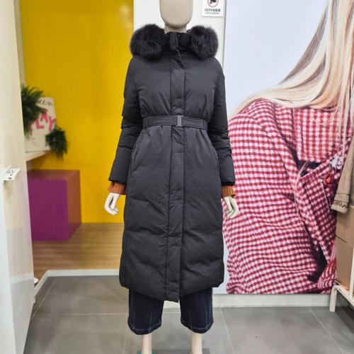 [베네통]베네통 벨티드 폭스퍼 구스 다운패딩 BAPDA8561 BK