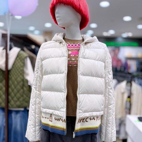 베네통/애플아울렛/백 니트 부클 배색 경량 구스 패딩/BAPD65461