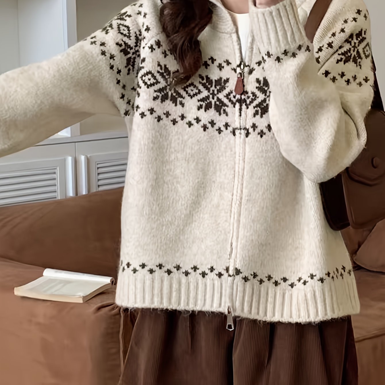 TEMU 여성용 우아한 스웨터 재킷 - 버건디 & 화이트 칼라에 블랙 플로럴, 더블 지퍼 프론트 클로저, 두꺼운 겨울 코트, 캐주얼 & 포멀 웨어용 기계 세탁 가능한 오버사이즈