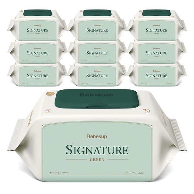 베베숲 시그니처 그린 유아물티슈, 70g, 70매, 10개
