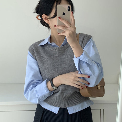 박남매 / 베스타 무드 세미 크롭 조끼 니트 P0002508