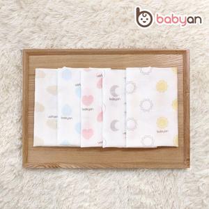 베이비앙 국내산 무형광 심볼라인 순면 엠보 손수건 5장