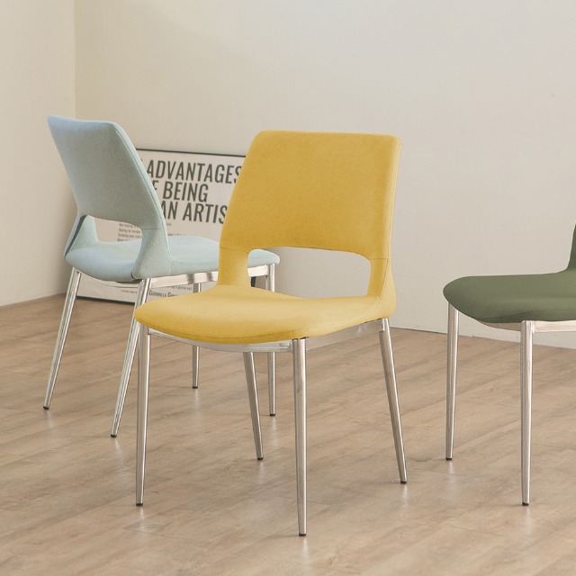 1+1 알로 크롬체어 미드센추리 패브릭 인테리어 카페 식탁의자 3color