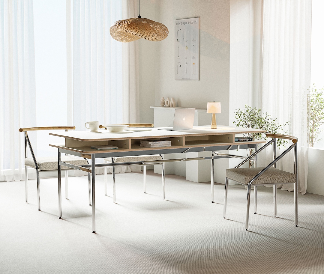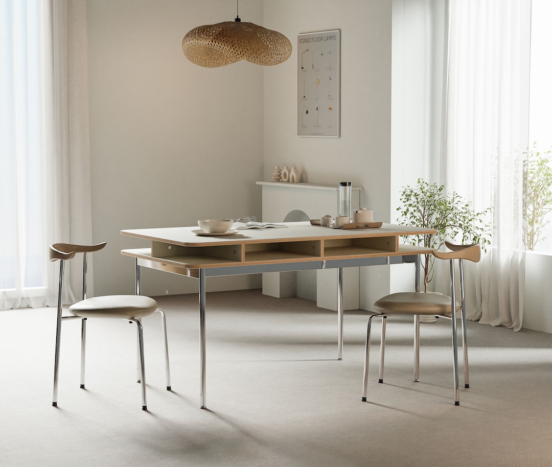 쿠폰가 209,000/ 모노베 수납 사각 거실 식탁 수납 테이블 1400 (의자선택)
