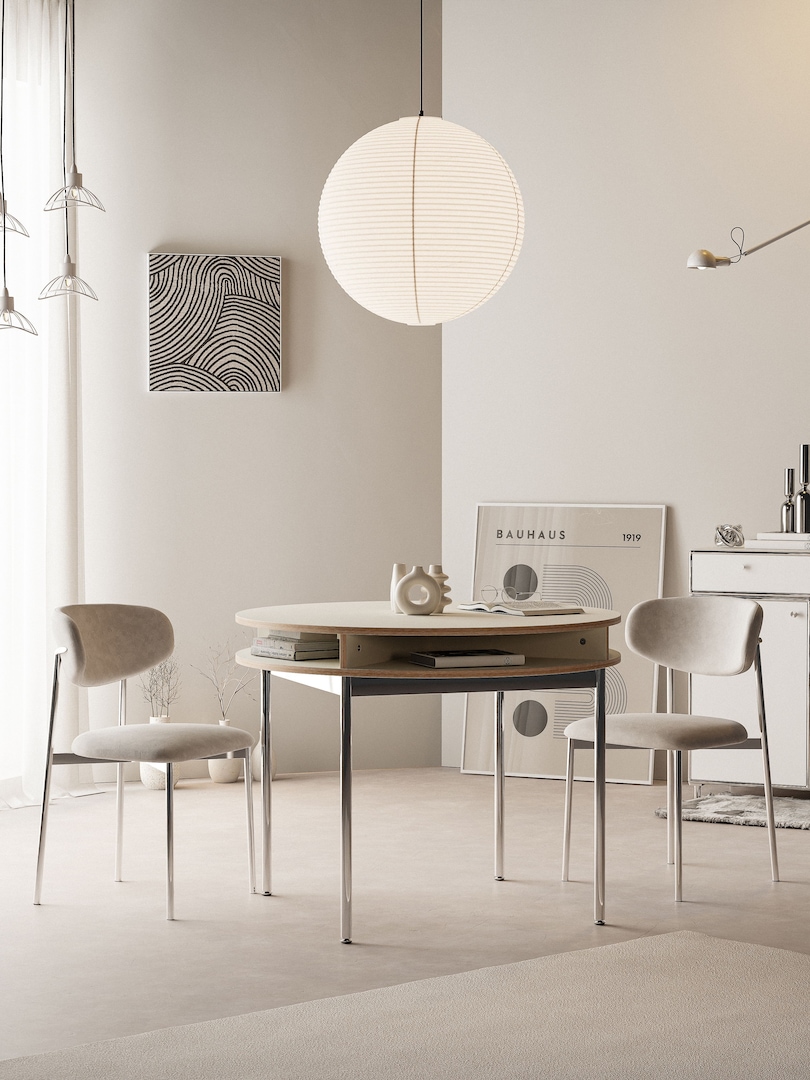 쿠폰가 151,050/ 모노베 수납 원형 거실 식탁 수납 테이블 800 (의자선택)