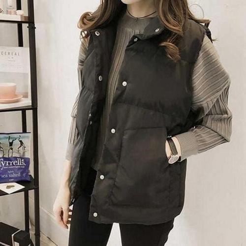 하이넥 오버핏조끼 덮어주는 여성패딩조끼 겨울베 (WFKJX79)